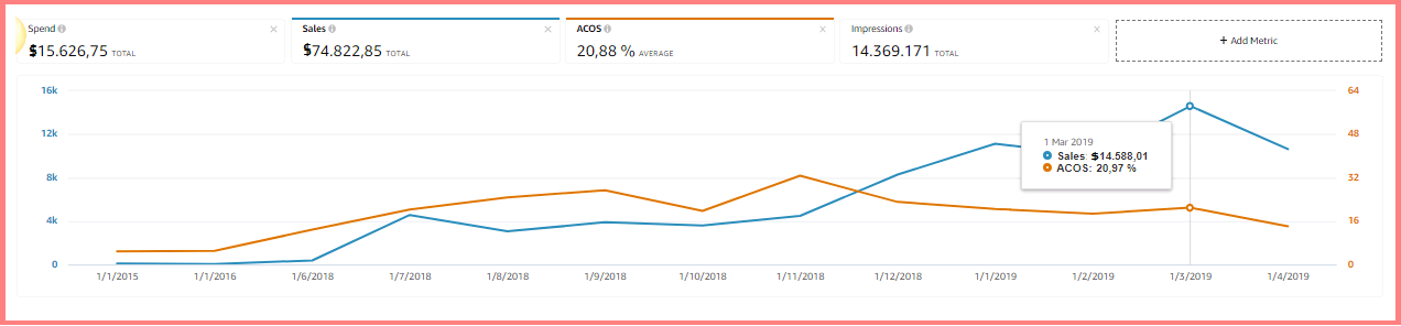 The Advertising Cost of Sale (ACoS) is a key metric for measuring the success of Amazon Sponsored Product Campaigns(PPC). It’s an analysis of the ratio of ad spends to targeted sales and is calculated like this:
